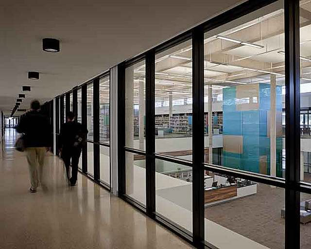 Nearly 40 years later, the college made its first significant changes to the campus with three separate, but significant projects. In 2008, a student commencement center and a health professionals building were added but disconnected from the main campus building, thus the relationship to the original CRS building could afford to separate itself from the rigidness of the structured grid. The latter of the three projects began in 2010. The college commissioned a major renovation and addition to the original main campus building. The two largest components of the project include infilling an existing courtyard as a Student Life Center, and renovating the existing two-story volume library. The college emphasized the importance of respecting the original CRS design, so great lengths were taken to preserve existing finishes and structural components. The new addition and renovations complement the original material pallet of light concrete, dark wood and bronze frames and hardware.