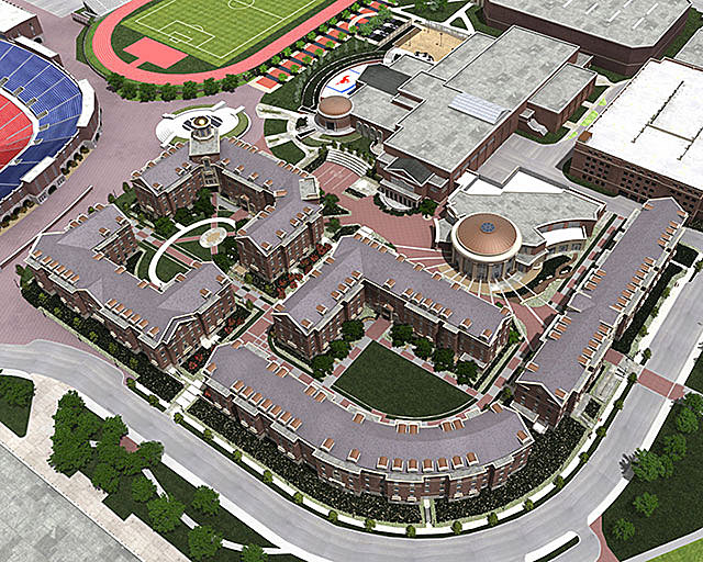 Featuring 1,250 beds, a 500-seat dining commons and an 800-car parking garage, the $146 million complex provides campus housing for an additional 1,250 students. Campus living beyond the first year has been linked to higher retention rates and creates a greater sense of camaraderie among students, and the Commons enables SMU to implement its new requirement that sophomores live on campus, as well as facilitate the transitional integration of academics and student life.