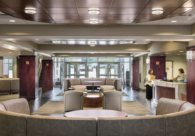 In order to remain within budget, interior finishes included specialty materials only in highly-visible and featured areas that would provide the most value for the dollar. By paying close attention to material budget costs and utilizing materials that are simultaneously beautiful, durable and cost-effective, designers were able to balance the cost of the specialty materials and remain in budget.