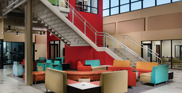 Now, in its third year of operation, a new classroom had to be added to the existing facility to accommodate 306 students. For the fall of 2017, the school experienced applications from 324 junior students and could only accept 188. The administration feels the response of the design supporting the cutting-edge learning environment as well as the strong brand and the high expectations of the collegiate style environment has gained positive notice from students, parents and businesses in the district is serves.