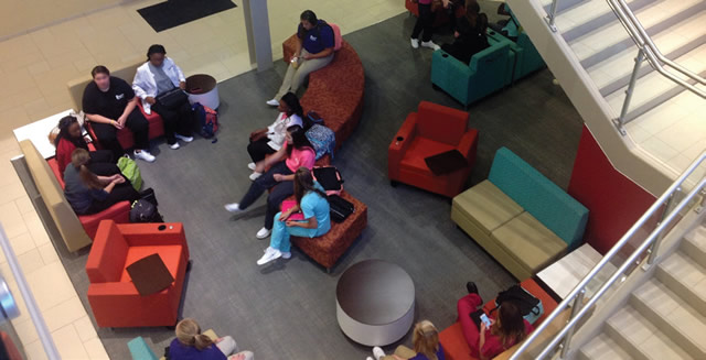 One of the basic concepts of the design for the proposed learning environment was to create a very upbeat environment that causes students to want to be present in a dynamic building and space. Utilization of unique building design, multi-story open space, lots of natural light, upbeat color and moveable furniture in a large multi- purpose space that includes restaurant style booths with a variety of seating options were selected to represent a learning environment that is attractive and geared to 21st-Century life styles.