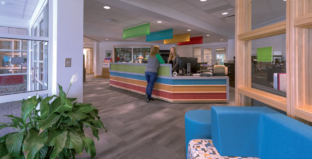 Previously, the early childhood program was dispersed at multiple locations throughout the District at the Community Education Building, in a portable classroom at the middle school, at an elementary school, and at the high school. The parent-funded, tuition-based program had more applicants than their facilities could accommodate. The new facility expanded the District’s program to accommodate an additional 50 to 100 students. In addition to the Early Childhood program, offices for Community Education and Enrollment Services were relocated to the new building. This building has allowed all of these functions to come together under one roof and serve as the District’s first point of contact for new families, making enrollment even easier and comfortable for families already used to the building and environment. Integrating these programs has proven to be successful for the District.