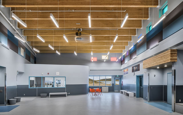 In reestablishing the school, the Government of Nunavut asked that principles of IQ and listening be followed. The resultant design eschewed the “southern” proclivity of turning schools into places of refuge where doors are locked during the daytime in order to ensure that “suspicious” people or “outsiders” do not gain access to the corridors. This approach to teaching is very much at odds with the northern experience, where harsh environment necessitated that groups and individuals traditionally shared all aspects of life, including education. Traditionally, all members of society were valued parts of the community. Collaboration and the sharing of knowledge was and still is fundamental to social strength and evolution. Far from being shunned, outside adults and elders are encouraged to enter the new school with the intent of sharing their knowledge, much of which is not part of a curriculum that is more typically focused on academic achievement.