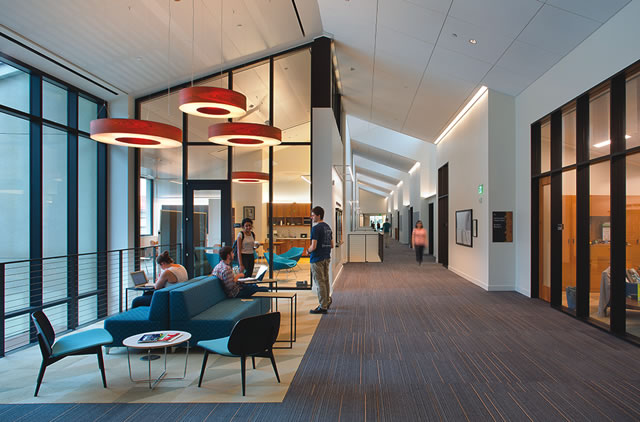 Millikan was accomplished by a collaborative design process that encouraged the building’s stakeholders, faculty, students, and staff from two distinctly different departments. The collaborative process allowed the vision and aspirations of each department to be realized collectively and individually resulting is an amazingly efficient and effective teaching and research learning environment. The design inspires current and future programs, teaching, and research facilities with active learning, labs, and collaborative spaces; creates central math and physic community hubs and breakout spaces; encourages accessibility between faculty and students through the location and layout of offices, classrooms, and labs; provides state-of-the-art facility that creates open and inviting areas for labs, shops, and a planetarium; provides a healthy environment through efficient HVAC, sunlight, and clean air.