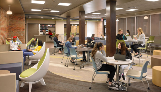 The project’s goal was to renovate the 15,000-square-foot space to create a “warm and social haven” with a unified, cooperative, welcoming, and functional design, the news release reports. The design process entailed extensive engagement with students and staff.